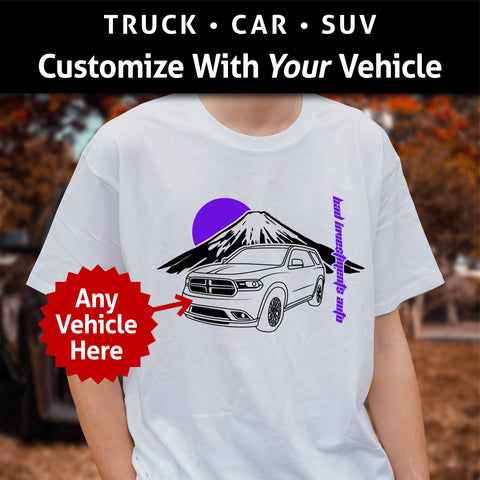 Turn your ride into wearable art with the Custom Shirt Your Vehicle T‑Shirt Design. Upload a photo and we’ll turn it into a personalized tee you’ll want to wear everywhere. Perfect for showing off at car meets and cruises. All designs include mountain range and sun featuring our club name. Limit of 1 vehicle in design.