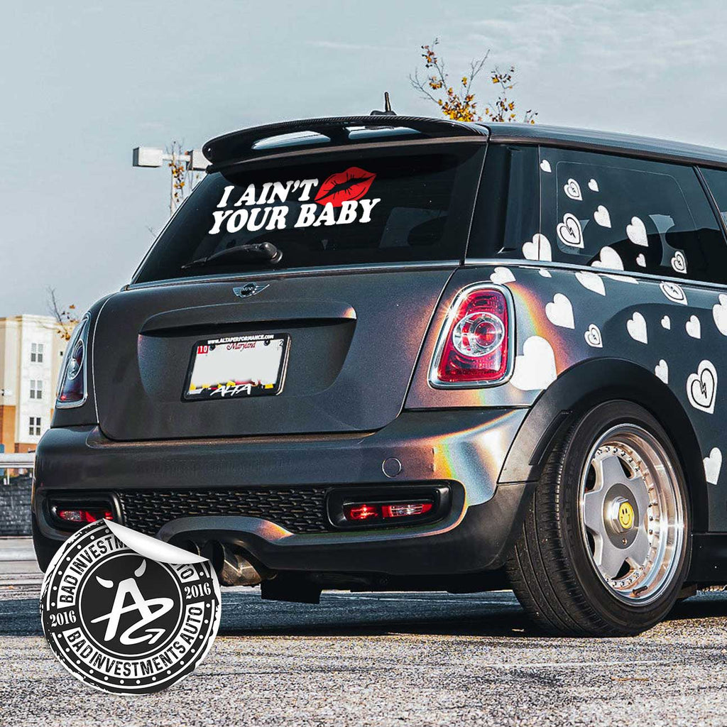 Put some attitude on your ride with the Ain’t Your Baby Decal, designed for JDM, Euro, and Muscle cars. This bold vinyl sticker adds statement styling to your windshield windows bumpers or body panels while resisting weather and fading for long lasting outdoor performance. To maximize the vinyl's lifespan and durability, follow our decal application instructions