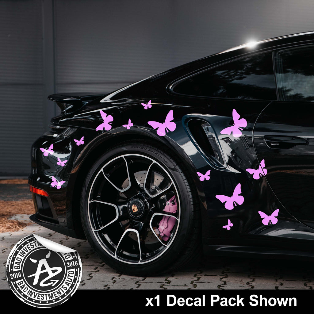 Turn your vehicle into a canvas of nature with the Butterfly Sticker Bundle for Vehicle. Designed from weatherproof outdoor vinyl, this bundle combines multiple butterfly graphics you can mix and match to personalize your ride with expressive, fluttering visuals. To maximize the vinyl's lifespan and durability, follow our decal application instructions.