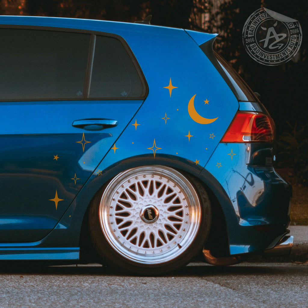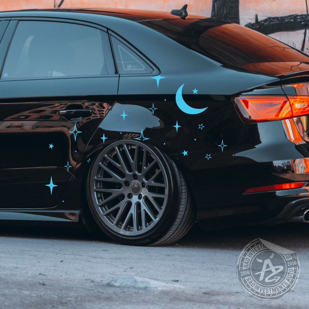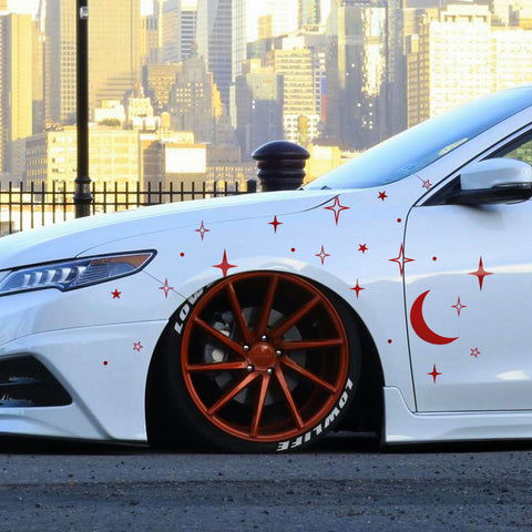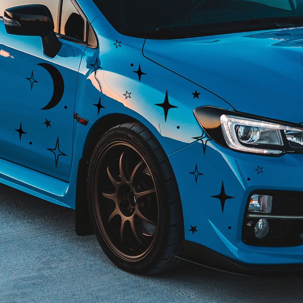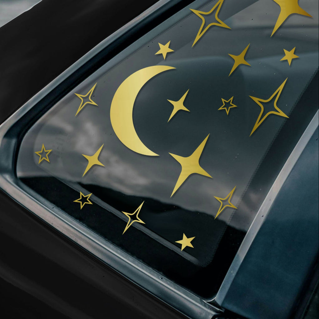 Elevate your ride with cosmic charm using the Cosmic Stars Moon Decal Pack Set for Vehicle. This set of premium vinyl stickers features stars, moons, and galactic elements that bring celestial style to your car truck SUV or any smooth surface while resisting weather and fading. To maximize the vinyl's lifespan and durability, follow our decal application instructions.
