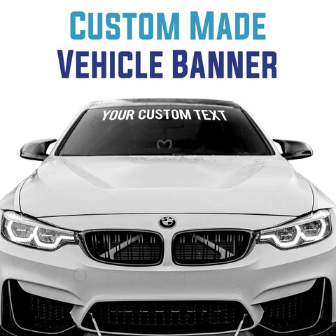 Bring your vision to life with the Custom Design Banner Decal for Vehicle, a personalized windshield banner that lets you choose your own text. Made from high-quality outdoor vinyl, this custom banner decal is weather resistant and designed to stand up to sun, rain, and everyday driving on cars, trucks, or SUVs. To maximize the vinyl's lifespan and durability, follow our decal application instructions.