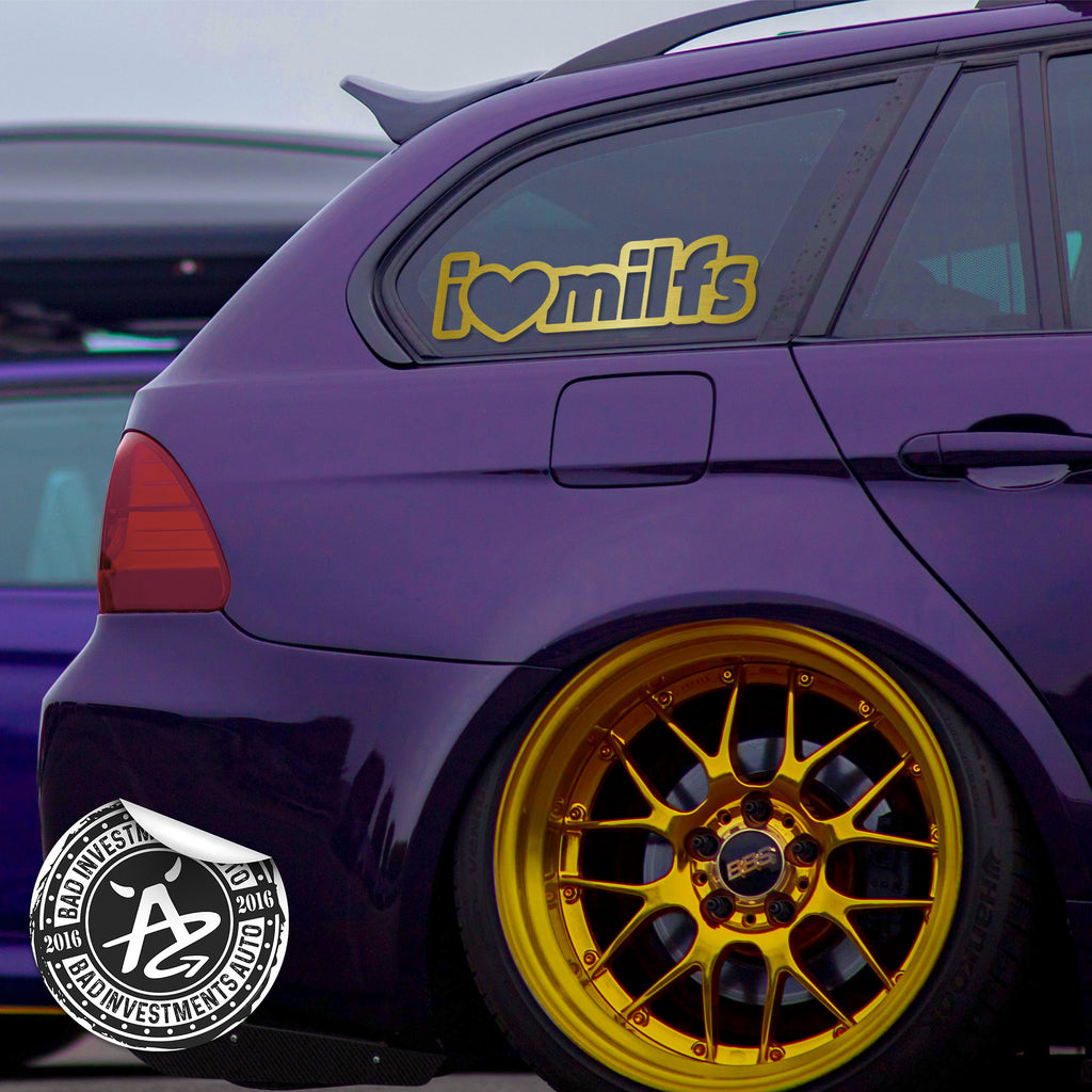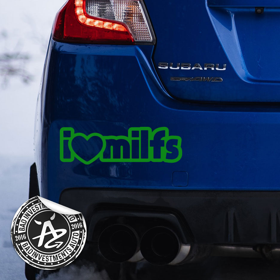 Bring some humor to your ride with the I Love MILFs Funny Car Decal, a bold and playful vinyl sticker made to spark laughs. Printed on durable weather‑resistant outdoor vinyl, this decal sticks easily to windows, bumpers, or panels and stays vibrant through sun, rain, and daily driving. To maximize the vinyl's lifespan and durability, follow our decal application instructions.