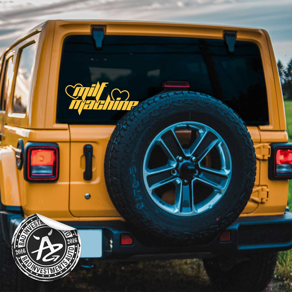 Add some cheeky personality to your ride with the MILF Machine Stacked Funny JDM Car Truck Decal, a bold vinyl sticker made for drivers with a sense of humor. Crafted from weather-resistant outdoor vinyl, this decal sticks cleanly to windows, bumpers, or panels and keeps its design vibrant through sun, rain, and daily driving. To maximize the vinyl's lifespan and durability, follow our decal application instructions.