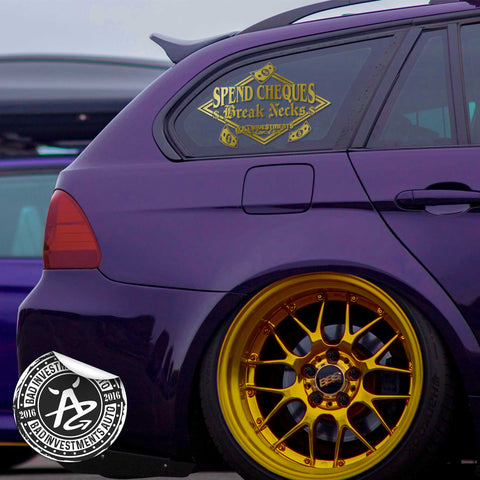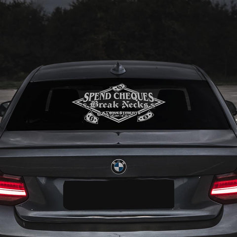 Add attitude to your windshield with the Spend Cheques Windshield Banner Decal. Designed for JDM Euro and Muscle vehicles this premium vinyl banner creates a striking look that stands out at meets on the road or at car shows. Great for outdoor durability it holds up to sun, rain and washes. To maximize the vinyl's lifespan and durability, follow our decal application instructions.