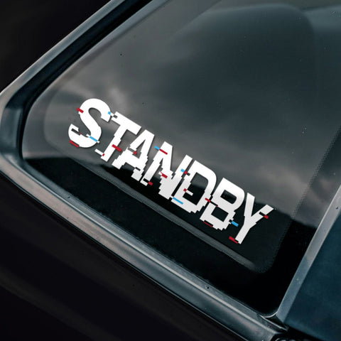 Grab the Standby Glitch Funny Decal. Made from weatherproof outdoor vinyl it looks great on windows bumpers mirrors and smooth surfaces while lasting through sun rain and washes. To maximize the vinyl's lifespan and durability, follow our decal application instructions.