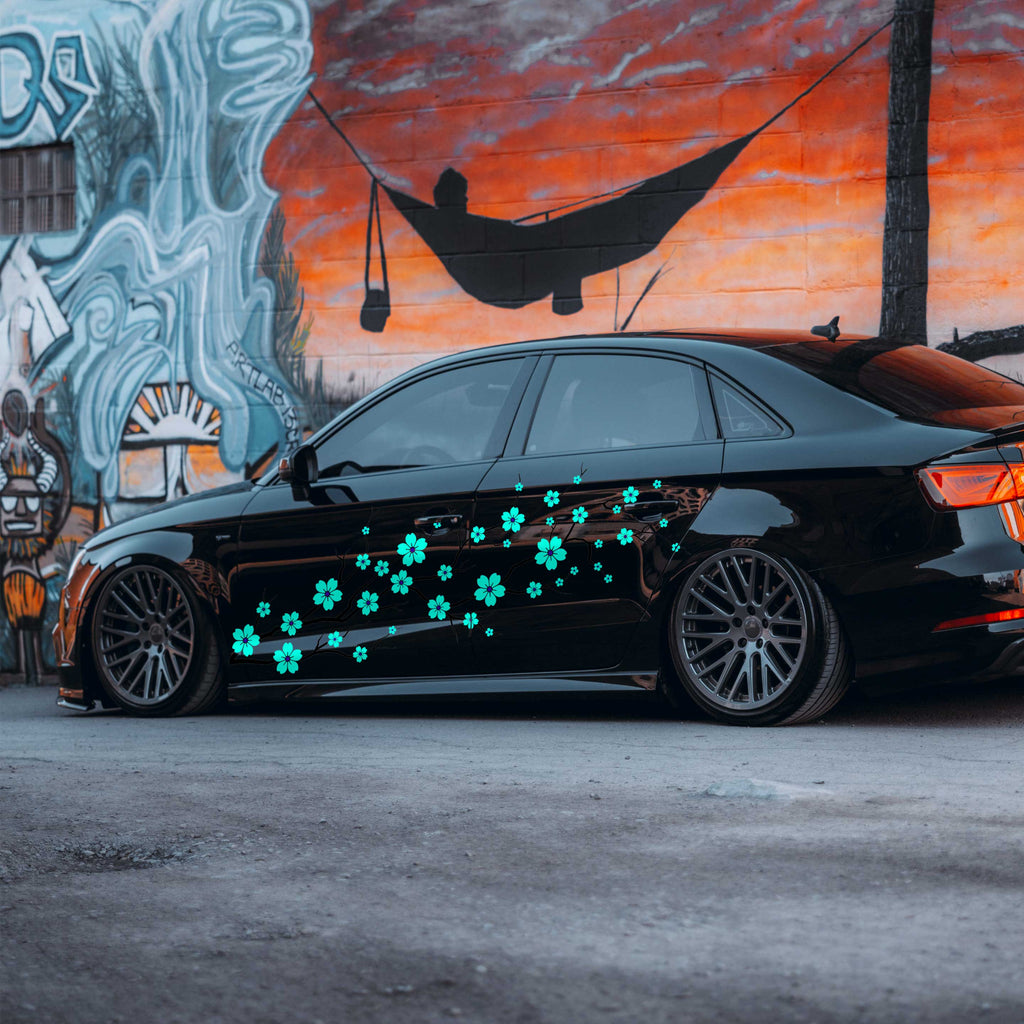 Bring beautiful cherry blossom style to your ride with the Cherry Blossom Sakura 4-Door Car Decal. Easy to apply and made from durable outdoor vinyl, this floral graphic looks great on doors, quarter panels, windows, or any smooth surface. This decal best fits medium to large sedan/cars with 4 doors. Smaller size of this design for 2-door vehicles here. To maximize the vinyl's lifespan and durability, follow our decal application instructions.