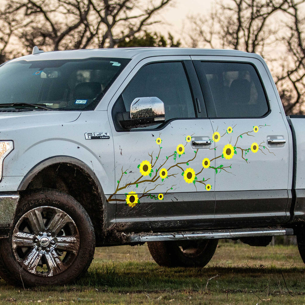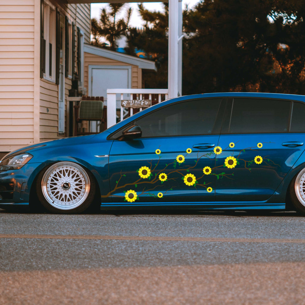 Designed specifically for four-door vehicles, the Sunflower 4-Door Car Decal adds bold floral style that flows cleanly across longer body panels. Made from high quality outdoor vinyl, this decal is built to handle daily driving while bringing bright, expressive sunflower graphics to your ride. Best fits 4 door vehicles. For a 2-door fit, click here. To maximize the vinyl's lifespan and durability, follow our decal application instructions.